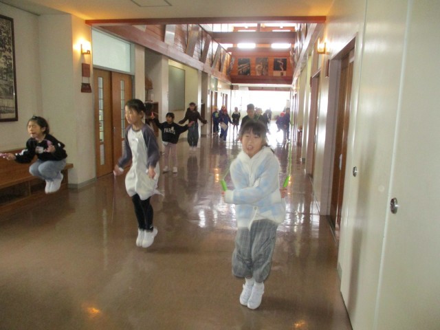 縄跳び大会に向けて、たつ1の始めに全員で1分30秒タイムを計って、自分が挑戦する技を跳んでいます。1分30秒跳び続ける体力と気力をつけてほしいと思っています。