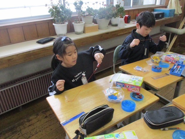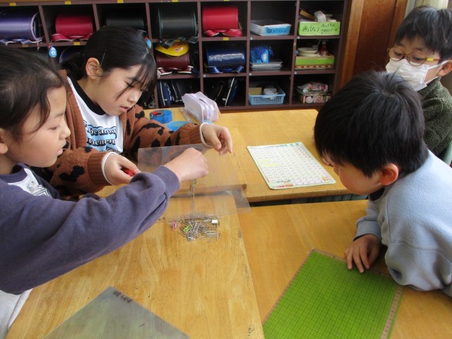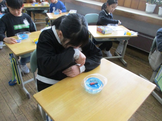 理科では、磁石の性質について学習を進めています。先日出し合った疑問を解決するために、実験を行いました。電気との違いを意識しながら、実験に取り組んでいます。