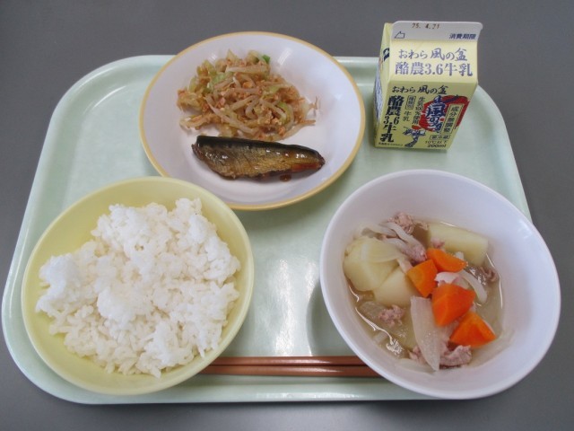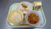 今日のいわしの梅煮は、骨までやわらかくなっていたので、丸ごと食べられました。和え物には、炒り大豆が入っており、カルシウム補給はばっちりでした。今日もおかわりをしている様子がみられて、うれしかったです。今日もおいしくいただきました。