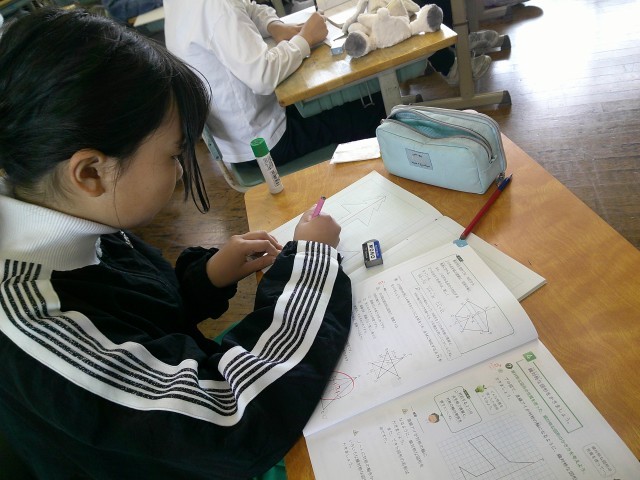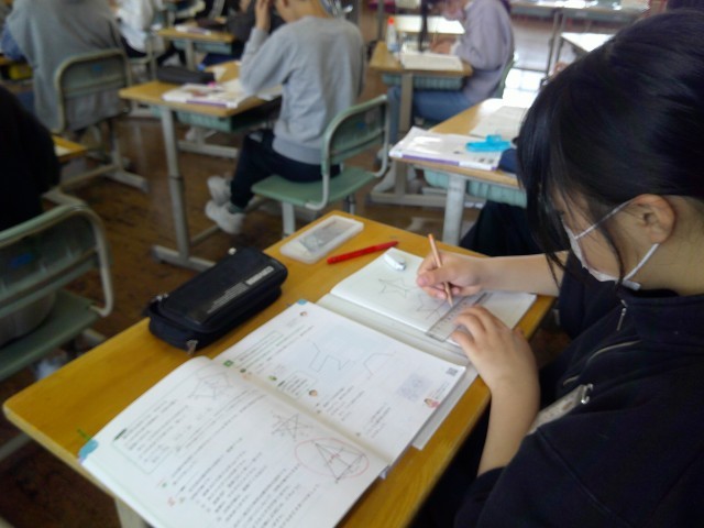 今日は、これまでに学習した図形の性質を活用して、作図しました。