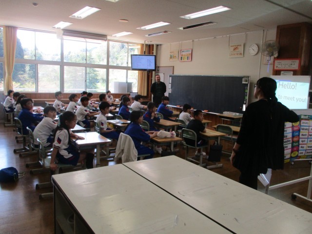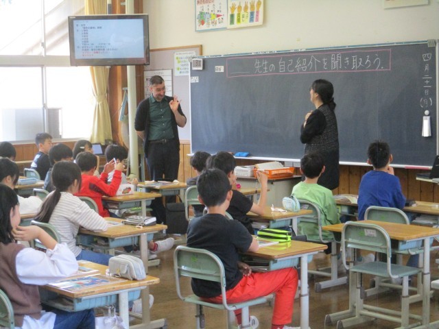 外国語の学習が始まりました。新しいALTの先生の自己紹介にしっかりと耳を傾けていました。
