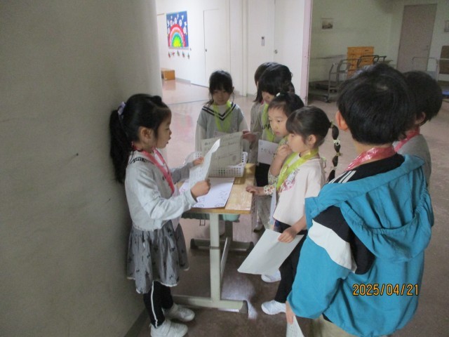 今週の月曜日に、2年生が考えてくれた集会に参加しました。自己紹介をした後に、学校の部屋の使い方や部屋の中にあるもの等をクイズ形式で答えていく学校探検とじゃんけん等をして遊ぶグループに分かれて楽しく学習しました。2年生と行った学校探検をもとに、1年生でももっと学校のことを詳しく知っていきたいと思います。
