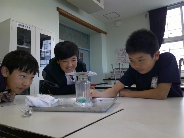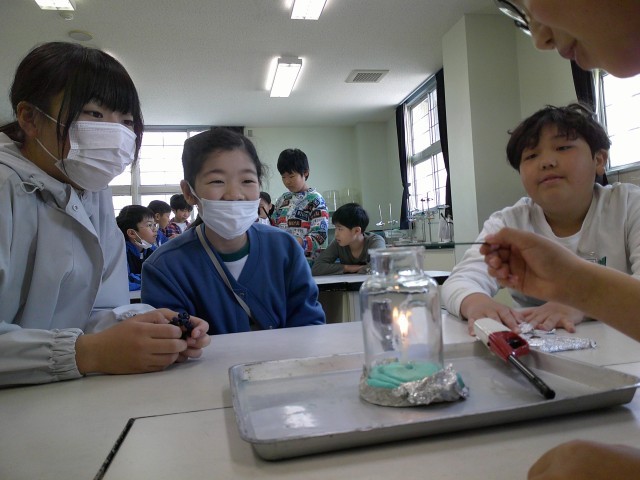 理科の学習では、物の燃え方の学習をしています。