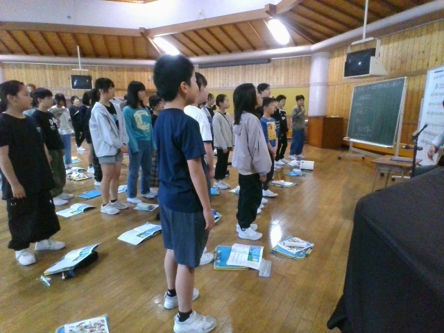 今日は、「歌詞に込められた気持ちを考えて歌おう」という目当てを立て、「つばさをください」を歌いました。