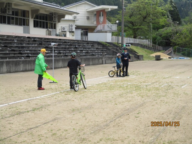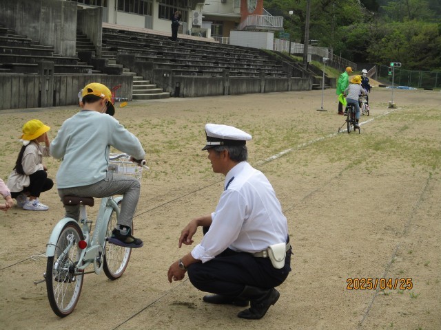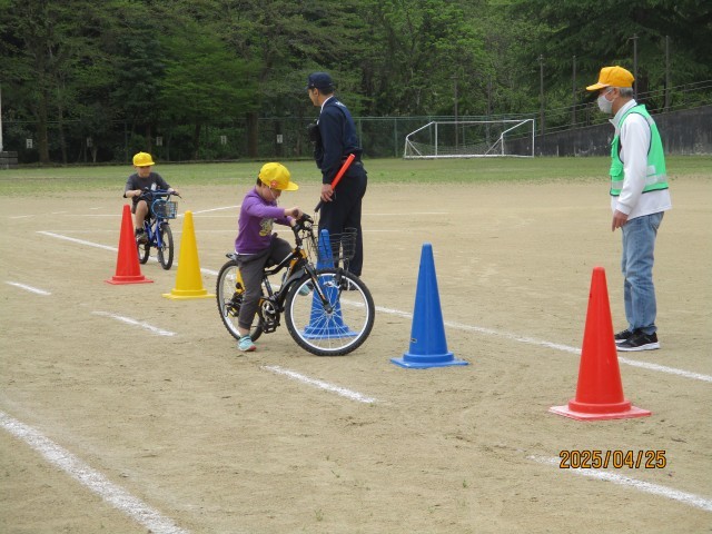 今日は、実際に自転車に乗って自転車教室を行いました。安全確認をしてから自転車をスタートさせることや交差点での曲がり方などを丁寧に教えていただきました。また、「ぶたはしゃべるら」という合い言葉での自転車点検のポイントも教えていただきました。整備された自転車で、安全に気を付けて自転車に乗ってほしいと思います。