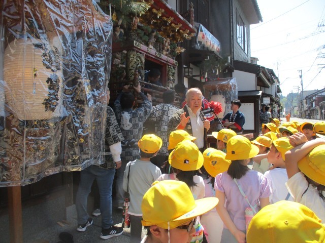 「曳山の重さは?」「神様はどんな人ですか?」と興味が尽きない様子の子供たち。