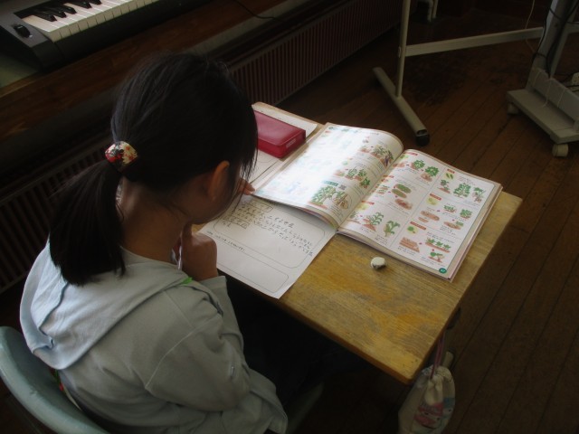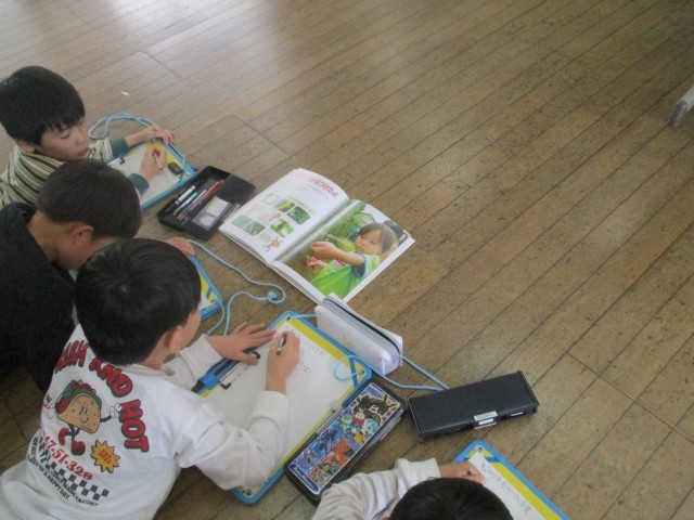調べ活動では、教科書や本、タブレットを使って苗の選び方や、育て方について調べました。