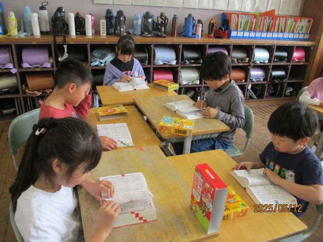 今日の国語では「国語辞典の使い方」を学習しました。グループで教え合いながら、辞典に慣れていきました。
