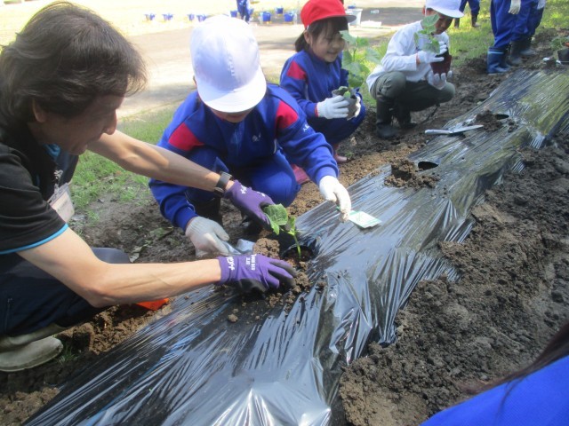 農協の方に植え方や育て方のこつを聞いて、元気に育つことを願いながら植えました。