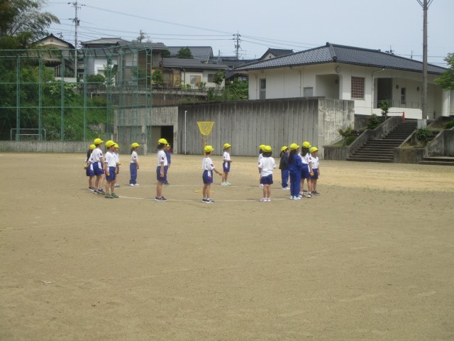 これまでは体育館での練習でしたが、今日はグラウンドで初めて練習しました。
