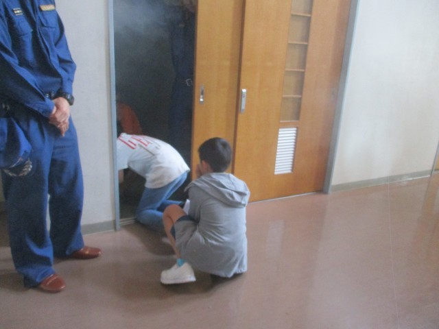 また、防火教室では、煙中体験を行い、煙の恐ろしさや視界の悪さを体感しました。