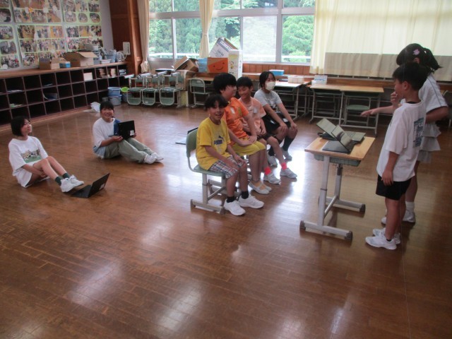 宿泊学習の活動準備を進めています。各活動の担当者で分担して、どのような活動か、必要な物は何かなどを調べてまとめています。また、入所式や退所式等の司会進行も自分たちで考え、リハーサルをしています。
