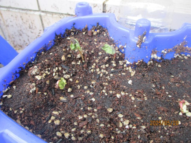 先週の金曜日にまいた種から、芽が出ました。昨日の時点でひょっこり顔を出している芽もありましたね!