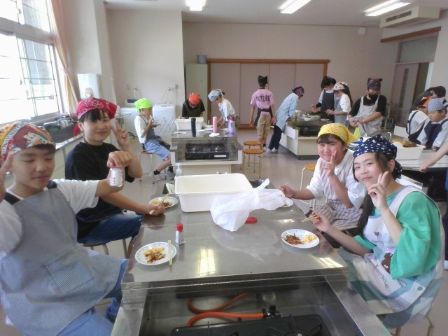 自分たちで調理した「いろどりいため」を食べながら、「今度はもっとにんじんを炒めよう。」「ひとりでも作れるようになりたいな」と次への意欲いっぱいの子供たちでした。