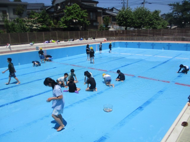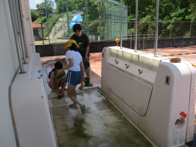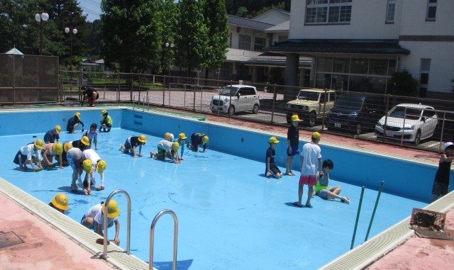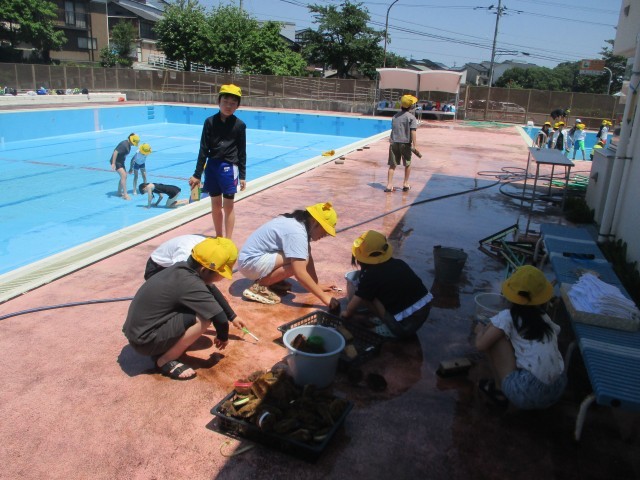 みんなで手分けをして、プールの中やプールサイド、更衣室等をきれいにしました。今年もきれいなプールで気持ちよく水泳学習ができそうです。がんばりました。