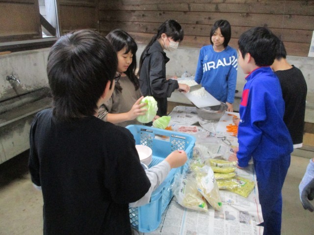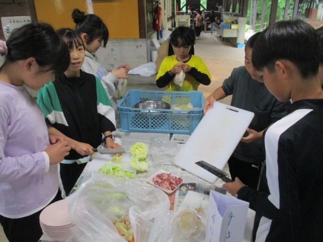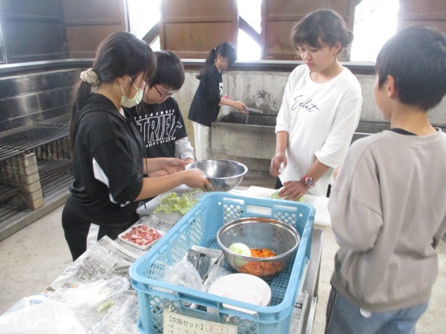 野外炊飯では「焼きそばづくり」に挑戦しました。役割分担をしながら手際よく調理を進めました。