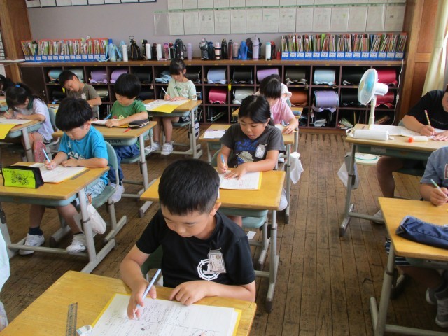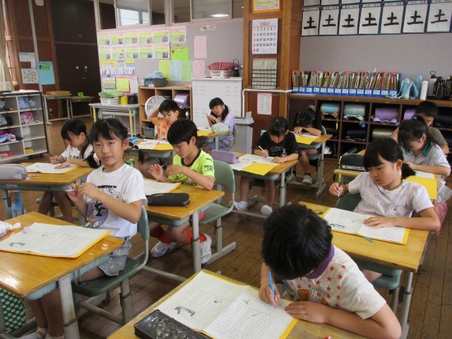 「まいごのかぎ」の学習では、まず一人学習として各々が本文を読み込み、そのあとみんなで感じたことを話し合って学習を進めようと考えています。今日は、一人学習として一場面の書き込みをしました。みんなとても熱心に書き込んでいました。話し合うのが楽しみです。