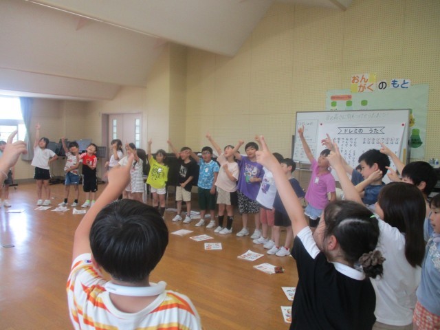 音楽科では元気よく「ドレミのうた」を歌ったり、ドレミ体操をしたりして、音楽を楽しんでいます。