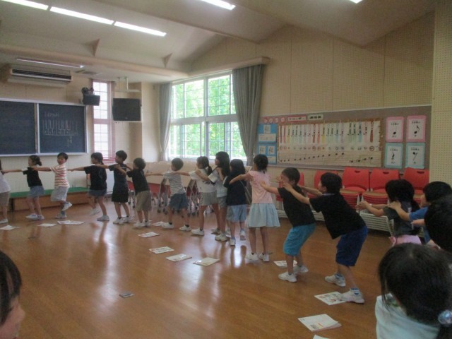 また、「振り付けをつけてみたい」という子供のアイディアで、歌詞にぴったりの振り付けをグループごとに考え、発表しました。