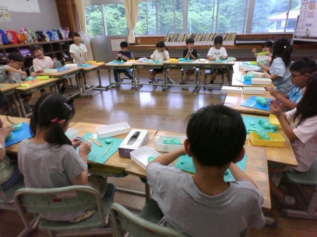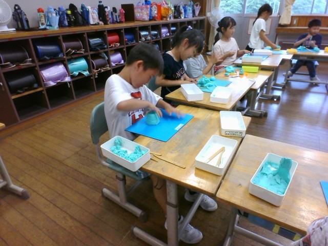 子供たちは、粘土を使って様々なお店を作り、紹介しました。