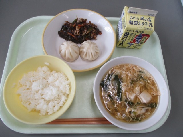 今日のにら玉汁に入っていた「にら」は、富山県産の「にら」でした。「にら」は、風邪予防、疲労回復に効果的です。給食では、あまり好まれない「海藻」ですが、もずくのヤプチェは、人気があります。「もっとたくさん食べたい」という声が聞けてうれしかったです。今日もおいしくいただきました。