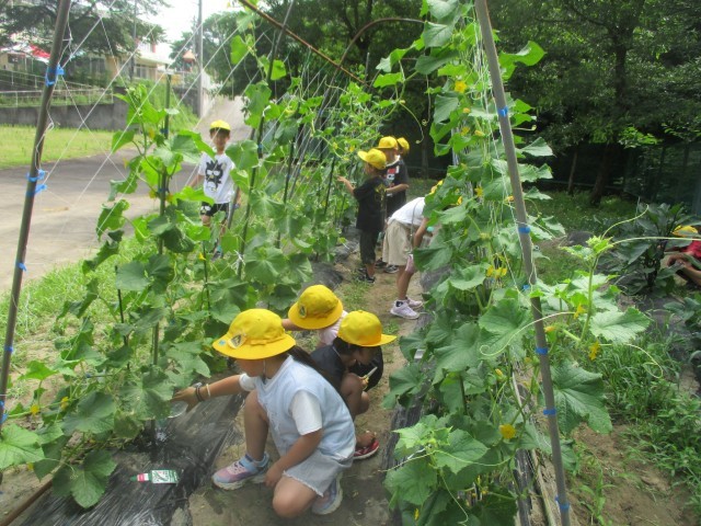 これまでお世話をがんばってきた子供たちは、自分が植えた苗が実をつけたことに喜びを感じています。