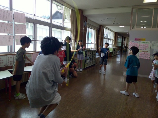休み時間になると、2年生や5年生が6年生教室に遊びにやってきます。