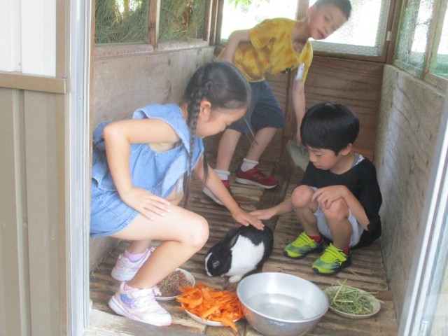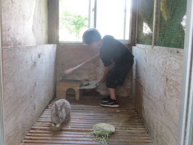 休み時間は、ウサギのお世話をがんばっています。