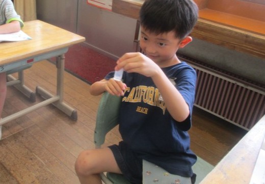 水のかさの学習では、1デシリットルカップでは計れない、少ない水のかさの学習をしました。