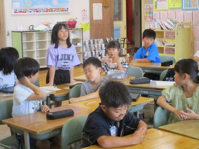 1学期にがんばったことを全員が発表できました。すでに2学期の目当てを決めている子供もおり、とても頼もしかったです。