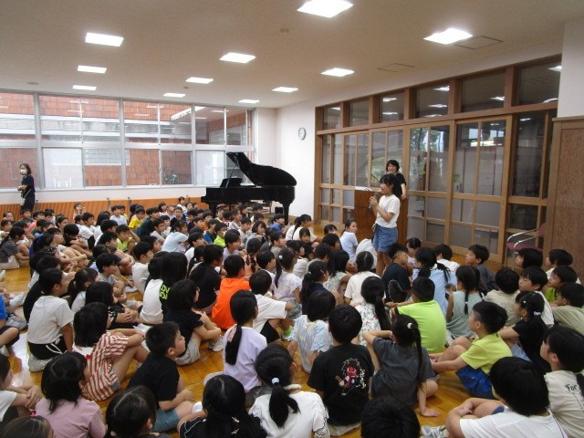 暑さ対策のため、始業式をオープンスペースで行いました。