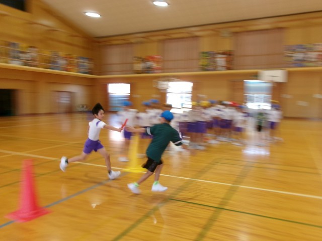 スタートダッシュの練習やリレーをしました。友達と競い合ったり作戦を考えたりしながら、楽しく運動しました。