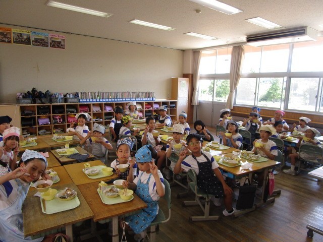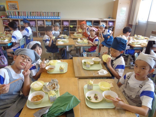 今日は2学期初めての給食でした。協力して準備をして、会話を楽しみながらいただきました。