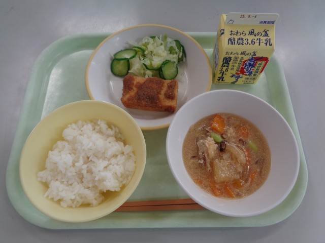 今日は、給食のお米を紹介しました。給食のお米は、富山県産の「富富富」を使用しています。名前を知っている人がたくさんいて、うれしかったです。おいしいごはんに、ごまだれの味噌がよく合いました。2学期も、安心・安全な給食を提供できるように努めます。今日もおいしくいただきました。
