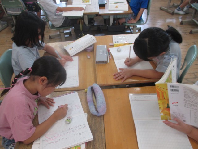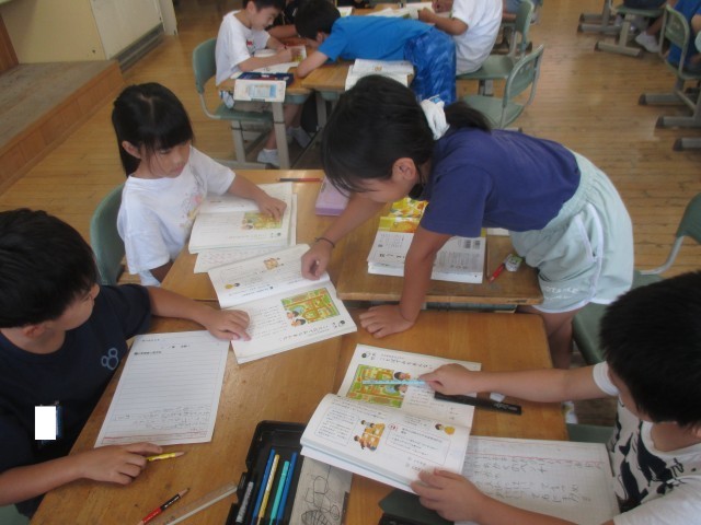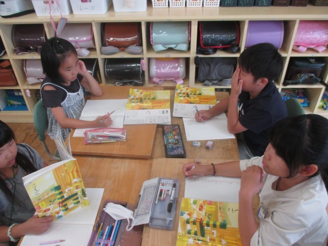 「あいてに正しくつたわるように話そう」をめあてに、地図にある場所を友達に説明する学習をしました。子供たちはグループになって、説明する人、聞く人に分かれて、一人ずつ行いました。「『そこ』じゃわからないよ」や「『しばらく行く』ってどのくらい」など、伝わるように話そうと頑張っていました。