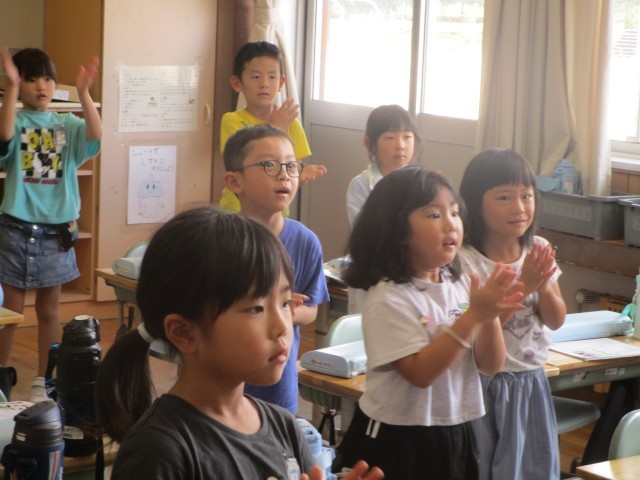 1年生 公開日 2025/09/04 更新日 2025/09/04 1年生 音楽の学習では、毎時間、ダンスをしています。「てのひらをたいように」「Make your happy」の曲に合わせてのボディパーカッションです。
