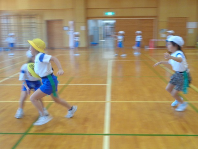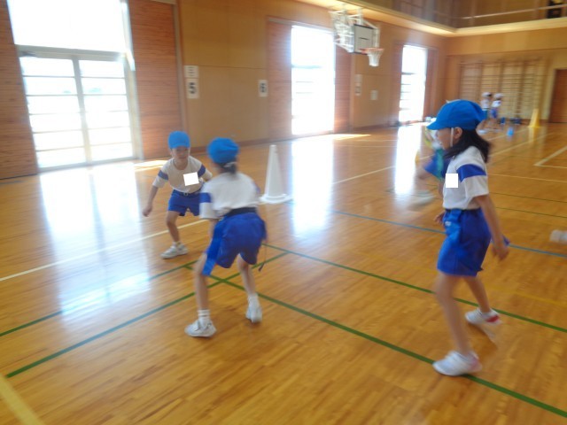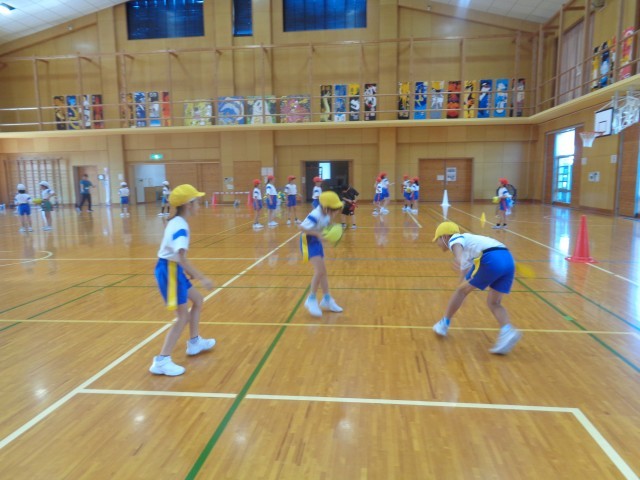体育のタグラグビーでは、少しずつゲームに近い形で練習を始めています。ボールを持ったらゴールを目指し走ることを意識して活動しました。