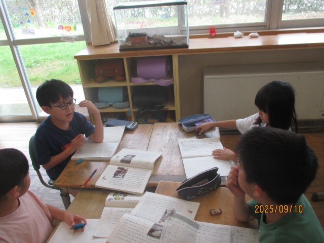 どうぶつ園で働く獣医さんのお仕事について、どうしてその仕事をするのか、動物に治療するときの工夫は何かを教科書から読み取り、整理しました。子供たちが、グループで真剣に話し合って説明文を読み進めていく様子に成長を感じました。