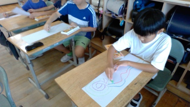 「まぼろしの花」はどんな形?、どんなところに咲いている?、と想像しながら描いています。