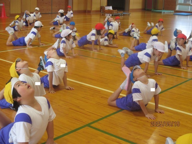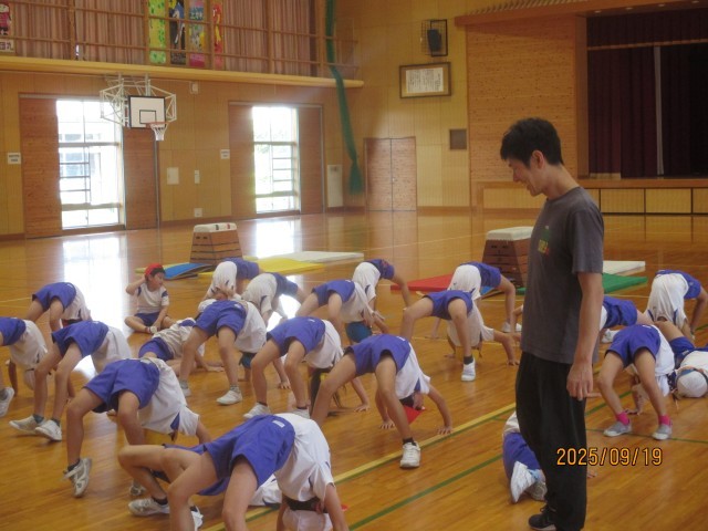 今週2回目の器械運動教室を行いました。ブリッジや馬跳びの準備運動をした後、自分で決めた跳び箱に挑戦しました。子供たちは、山本先生に教えていただいた跳び方のこつを意識して真剣に取り組みました。