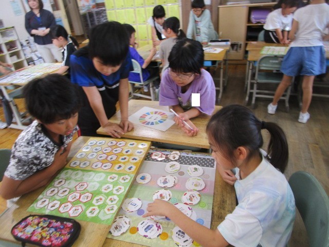 SDGsについてゲームを通して学習する体験会を行いました。資源は使うとなくなってしまうこと、資源がなくならないようにみんなで協力することを学びました。