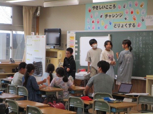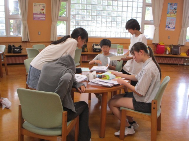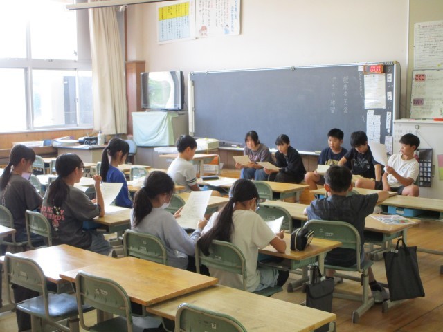 劇の台詞練習をしたり、話合いをしたりしていました。学年の枠を越えて、協力して活動しています。