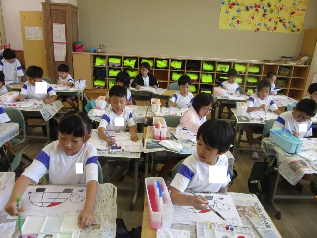 絵の具の混ぜ方を学習しました。亀の甲羅をカラフルに塗ることができました。