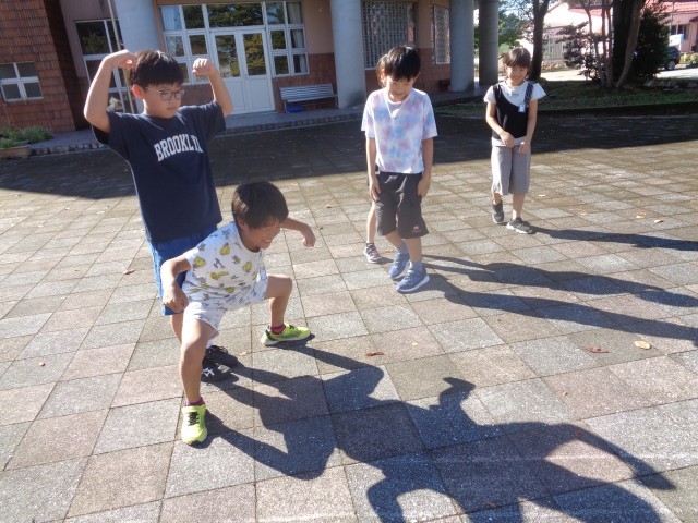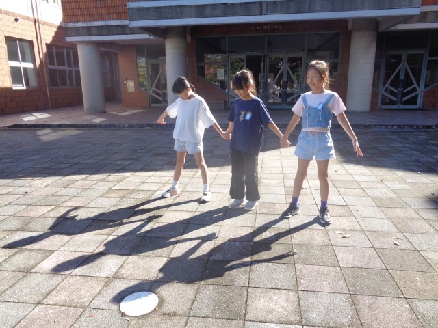 「ちいちゃんのかげおくり」の学習が始まりました。「かげおくりって本当にできるの?」と疑問に思う子供たち。実際に外に出て「ひとぉつ、ふたぁつ、みっつ・・・」と、数えて空を見上げました。「本当にかげおくりができるんだね!」といろいろなかげを空に送りました。