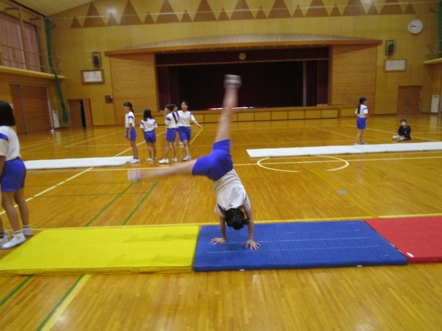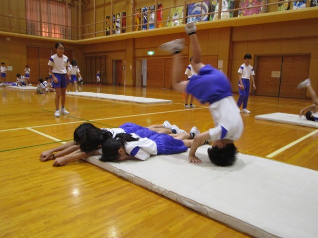 久しぶりのマット運動に取り組みました。どんな技にも積極的に挑戦していました。