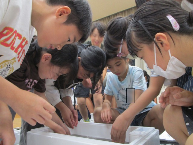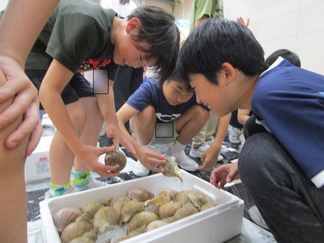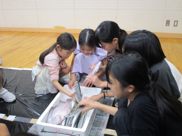 魚屋を営んでいらっしゃる方からお話を聞いたり、実際に魚に触れたりしました。