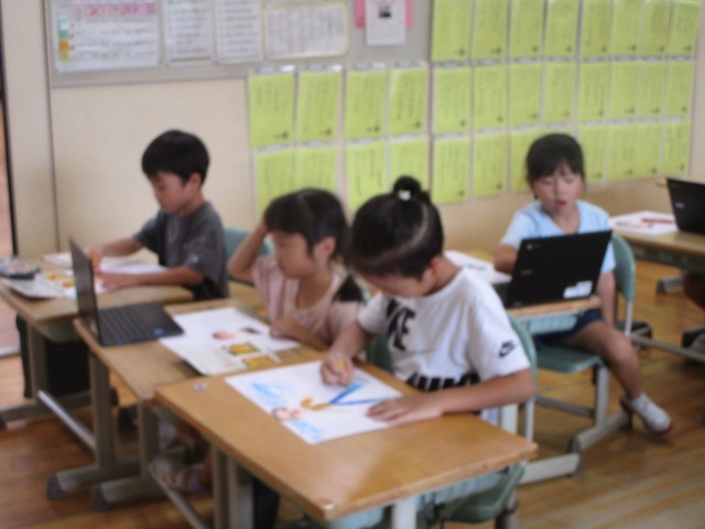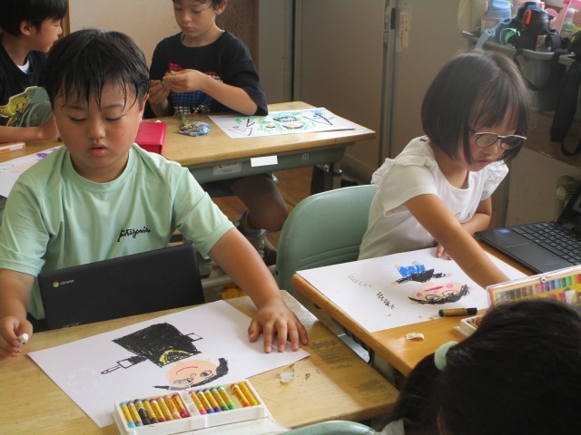 1年生 図工 先生あのね 公開日 2025/10/08 更新日 2025/10/08 1年生 「先生あのね」という題材で絵を描く学習をしています。子供たちが大好きなパパ・ママのことを先生に教えてねというと、子供たちはさっそく思い思いの絵を描き始めました。
