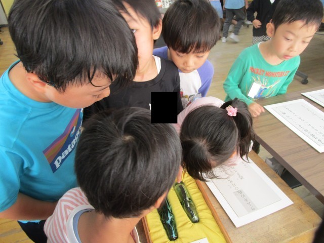 宮沢賢治についてを紹介している「宮沢賢治の世界」にみんなで行きました。ラムネやどんぐり等、お話にまつわるものが展示してありました。子供たちはクイズに夢中になっていました。