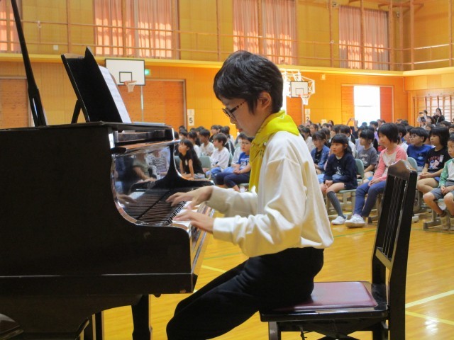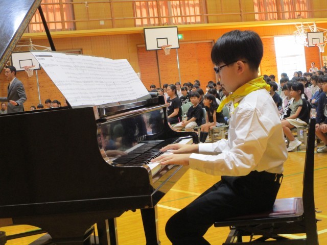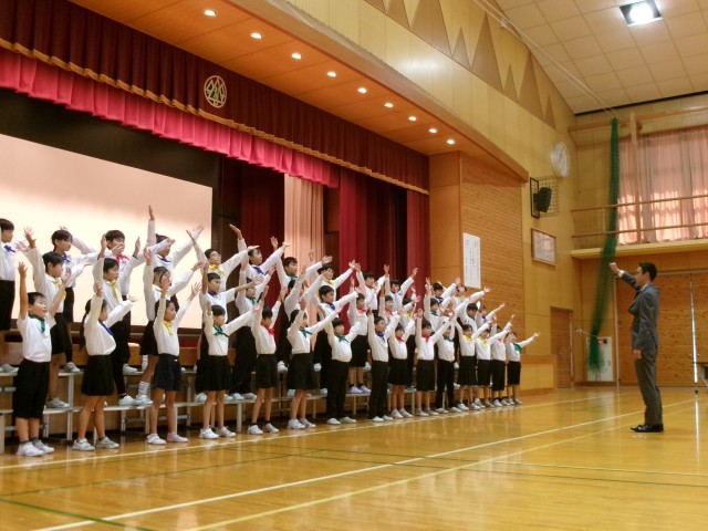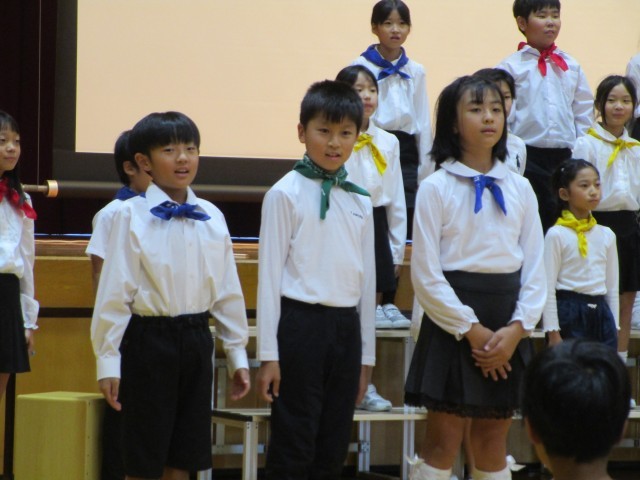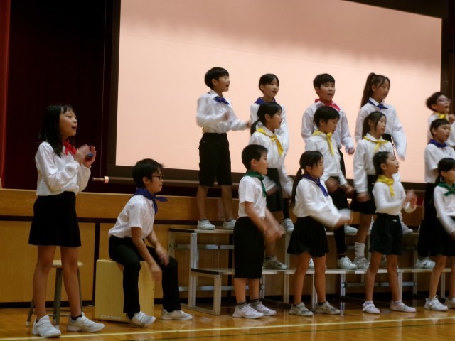 「やあ!」「365日の紙飛行機」の2曲を発表しました。「練習の成果を発揮したい!」、「歌声で見ている人を感動させたい!」と、心を込めて歌いました。
