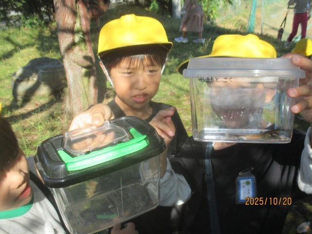 生活科の学習で、生きものを探しに行きました。子供たちは生きものを捕まえたり、生きもののすみかをつくったりと意欲的に活動しました。